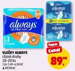| Always Ultra Normal plus hygienické vložky 10 ks | CBA | 49,90 Kč | 28 ledna 2026 | 03 února 2026 | |||