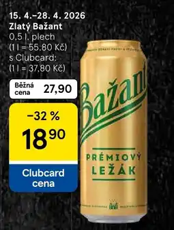 | 4 | Zlatý Bažant 0.5 L | Tesco | 23,90 Kč | 13,90 Kč | -41% | 29 dubna 2026 | 05 května 2026 | Zobrazit nabídku | |