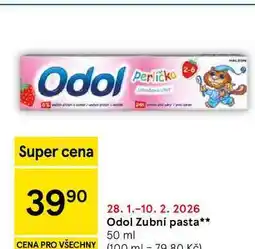 | Odol perlička zubní pasta | Tesco | 54,90 Kč | 44,90 Kč | 10,00 Kč Slevu | 13 srpna 2025 | 19 srpna 2025 | |