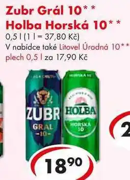 | Holba Horská 10* Zubr Grál 10* 0.5 L | CBA | 13,90 Kč | 25 února 2026 | 03 března 2026 | |||