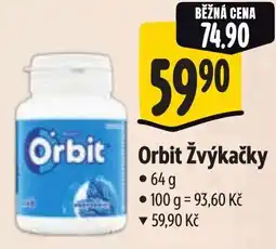 | Wrigley's Orbit žvýkačky bez cukru 46 ks dóza, vybrané druhy 64g 64 g | Lidl | 59,90 Kč | 29 ledna 2026 | 01 února 2026 | |||