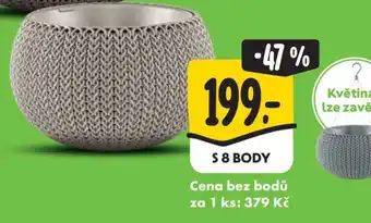 Tato nabídka na KVĚTINÁČ platí v týdnu 16. Už skončila? Nevadí, můžete si prohlédnout další podobné nabídky. Sledujte kategorii produktů, abyste byli informováni, jakmile se KVĚTINÁČ znovu objeví u Albert.