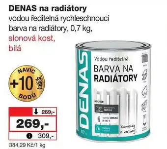 DENAS na radiátory vodou ředitelná rychleschnoucí barva na radiátory, 0,7 kg akce a online nabídky u Barvy a laky drogerie