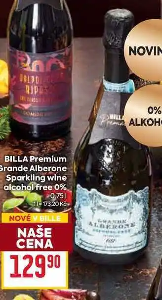 Nyní v nabídce u Billa: BILLA Premium Grande Alberone Sparkling wine alcohol free 0% 0,75l ✅ Platné od 22-10 do 31-12.