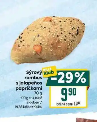 Sýrový rombus s jalapeños papričkami sleva u Billa
