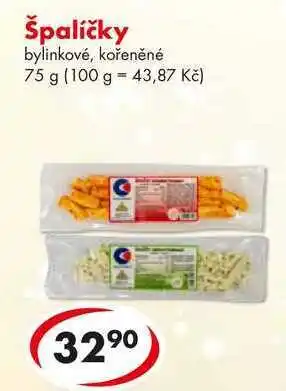 Tato Špalíčky, 75 g je aktuálně v nabídce u CBA. Veškeré informace o cenách, podmínkách akce a době platnosti najdete přímo na této stránce. Prohlédněte si také další podobné nabídky a akce související s Špalíčky, 75 g, abyste vždy zvolili tu nejvýhodnější možnost.