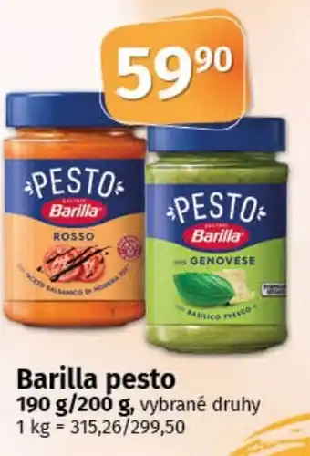 Tato Barilla pesto je aktuálně v nabídce u COOP TIP. Veškeré informace o cenách, podmínkách akce a době platnosti najdete přímo na této stránce. Prohlédněte si také další podobné nabídky a akce související s Barilla pesto, abyste vždy zvolili tu nejvýhodnější možnost.