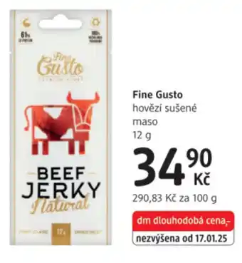 Nyní v nabídce u dm drogerie: Fine Gusto hovězí sušené maso ✅ Platné od 22-01 do 18-02.
