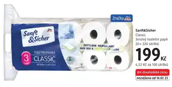 Podívejte se na nejlevnější produkty ze všech Kosmetika & Zdraví! Pokud chcete vědět, zda má dm drogerie nejvyšší slevu na Sanft&Sicher, porovnejte ji na našich stránkách na aktuální Dm drogerie leták platný od 19-02-2026 do 18-03-2026, nebo prověřte třeba další obchody.