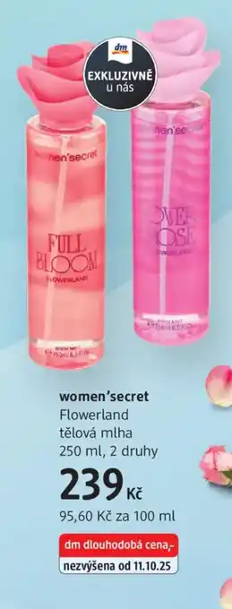 Nyní v nabídce u dm drogerie: Women'secret Flowerland tělová mlha ✅ Platné od 6-12 do 15-01.