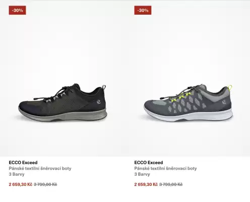 Prohlédněte si aktuální letáky společnosti ECCO a plaťte vždy férovou cenu. ECCO má 23 obchodů v ČR s pravidelnými týdenními akcemi. V nejnovějším ECCO leták najdete informace platné od 15-04-2026 do 28-04-2026. Tento víkend zde objevíte 0 položek dostupných za výhodných podmínek. Nezapomeňte na leták s produkty jako: Větrovka, Pánská košile a Solární světlo plamen! ECCO má samozřejmě i další sortiment, který momentálně není součástí letáku. Tyto položky si můžete objednat online nebo vyzvednout v některém z odběrných míst či obchodů ve vašem okolí. Nejbližší prodejní místo snadno najdete pomocí vyhledávače v horní části stránky vedle vyhledávacího pole. Další informace, například otevírací doba obchodu, najdete také na stránkách Brno, Hradec Králové, Liberec nebo na oficiálním webu ECCO.
