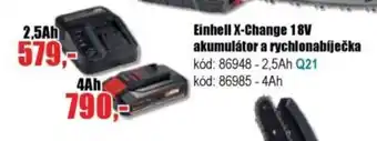 Je příští týden v akci Einhell X-Change 18V akumulátor a rychlonabíječka u EVA?