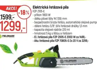 - příkon 1800 W - délka pilové lišty 14/355 mm - bezpečnostní brzda řetězu, automatická olejová pumpa - dělení řetězu 3/8", šíře řetězové drážky 1,3 mm - kapacita olejové nádrže 220 ml - hmotnost 5 kg s lištou a řetězem