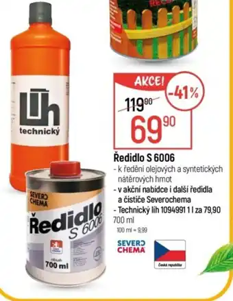 - k ředění olejových a syntetických nátěrových hmot - v akční nabídce i další ředidla a čističe Severochema -Technický líh 109499111 za 79,90