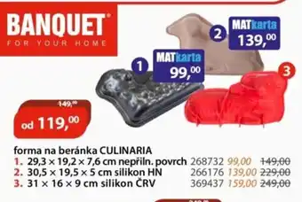 Cenu Forma na beránka Culinaria najdete v horní části stránky spolu s informacemi o tom, kdy je nabídka k dispozici. Cenu si můžete také ověřit v aktuálním M.A.T. leták nebo na webových stránkách M.A.T.. Akční nabídky a nákupy za tu nejnižší cenu můžete také získávat díky pravidelnému sledování M.A.T. leták a jednotlivých Stavebniny.