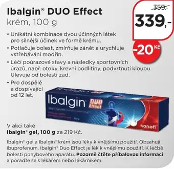 IbalginⓇ DUO Effect krém je nyní dostupný se slevou u Magistra lékárny. Na této stránce najdete všechny informace o aktuální ceně, podmínkách akce a době platnosti nabídky. Podívejte se také na další podobné nabídky a akce související s IbalginⓇ DUO Effect krém, abyste vždy zvolili tu nejvýhodnější možnost.