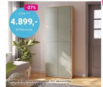 Möbelix nabízí kromě Botník alice široký výběr nových i oblíbených produktů. Sledujte týdenní leták Möbelix leták, kde najdete nejlepší nabídky a akce. Kromě Botník alice můžete najít také následující nabídky: Termohrnek Alice, Botník 83168-13 BK a Botník HALS. Prohlédněte si také další Nábytek & Zahrada, ať vám neuniknou ty nejlepší ceny.
