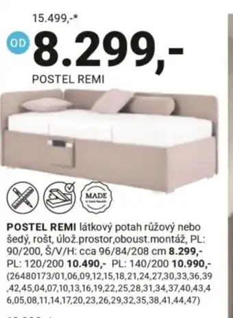 Cenu Postel remi najdete v horní části stránky spolu s informacemi o tom, kdy je nabídka k dispozici. Cenu si můžete také ověřit v aktuálním Möbelix leták nebo na webových stránkách Möbelix. Akční nabídky a nákupy za tu nejnižší cenu můžete také získávat díky pravidelnému sledování Möbelix leták a jednotlivých Nábytek & Zahrada.