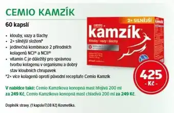 Cenu Cemio kamzík najdete v horní části stránky spolu s informacemi o tom, kdy je nabídka k dispozici. Cenu si můžete také ověřit v aktuálním Mojelekarna.cz leták nebo na webových stránkách mojelekarna.cz. Akční nabídky a nákupy za tu nejnižší cenu můžete také získávat díky pravidelnému sledování Mojelekarna.cz leták a jednotlivých Kosmetika & Zdraví.