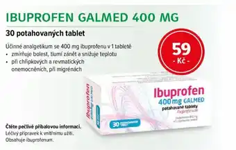 Cenu Ibuprofen Galmed najdete v horní části stránky spolu s informacemi o tom, kdy je nabídka k dispozici. Cenu si můžete také ověřit v aktuálním Mojelekarna.cz leták nebo na webových stránkách mojelekarna.cz. Akční nabídky a nákupy za tu nejnižší cenu můžete také získávat díky pravidelnému sledování Mojelekarna.cz leták a jednotlivých Kosmetika & Zdraví.