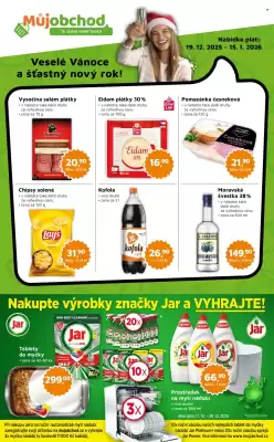 Nejnovější Můjobchod leták na tento týden najdete v horní části této stránky. Tento Můjobchod leták, platný od 19-12-2025 do 15-01-2026, obsahuje kompletní přehled aktuálních reklamních letáků Můjobchod. Uvidíte zde, kolik stran leták má a jak dlouho ještě platí. Informace jsou ověřené přímo od Můjobchod a platí pro prodejny například v Brno, České Budějovice a Hradec Králové.