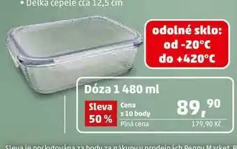 Penny Market nabízí kromě Dóza 1 široký výběr nových i oblíbených produktů. Sledujte týdenní leták Penny Market leták, kde najdete nejlepší nabídky a akce. Kromě Dóza 1 můžete najít také následující nabídky: Dóza 1 480 ml, Dóza 1 000 ml a Dóza 1 480 ml. Prohlédněte si také další Supermarkety, ať vám neuniknou ty nejlepší ceny.