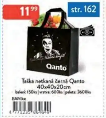 Taška netkaná černá Qanto je tento týden u Qanto dostupný se zajímavou slevou. Na této stránce najdete všechny informace o aktuální ceně, podmínkách akce a dalších speciálních nabídkách. Podívejte se i na další nabídky a akce související s Taška netkaná černá Qanto, abyste měli jistotu, že získáte tu nejlepší možnou nabídku.