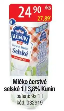Mléko čerstvé selské 3,8% Kunín