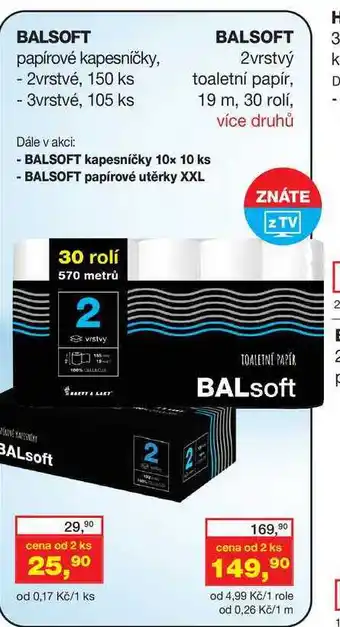 Nyní v nabídce u Ráj drogerie: BALSOFT 30 rolí ✅ Platné od 9-02 do 22-02.