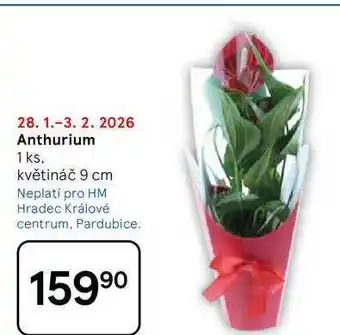 Nyní v nabídce u Tesco: Anthurium, 1 ks, květináč 9 cm ✅ Platné od 28-01 do 3-02.