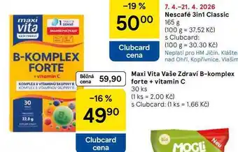 Nyní v nabídce u Tesco: Maxi Vita Vaše Zdraví B-komplex forte + vitamin C, 30 ks ✅ Platné od 15-04 do 21-04.