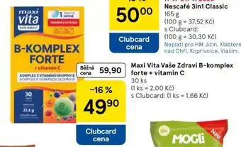 Nyní v nabídce u Tesco: Maxi Vita Vaše Zdraví B-komplex forte + vitamin C ✅ Platné od 15-04 do 21-04.