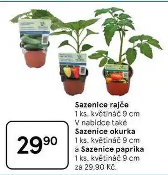 Nyní v nabídce u Tesco: Sazenice rajče, 1 ks, květináč 9 cm ✅ Platné od 15-04 do 21-04.
