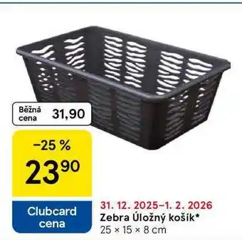 Nyní v nabídce u Tesco: Zebra Úložný košík, 25 x 15 x 8 cm ✅ Platné od 7-01 do 13-01.