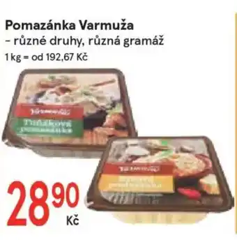 Podívejte se na nejlevnější produkty ze všech Supermarkety! Pokud chcete vědět, zda má Žabka nejvyšší slevu na Pomazánka Varmuža, porovnejte ji na našich stránkách na aktuální Žabka leták platný od 11-02-2026 do 24-02-2026, nebo prověřte třeba další obchody.